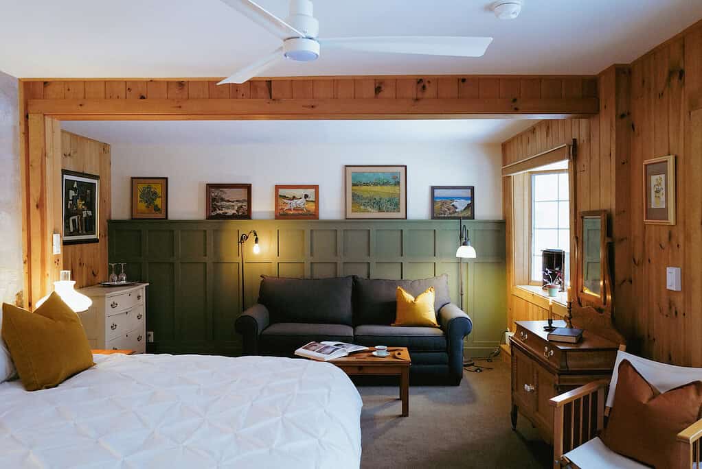 Nestled into fields and woods, The Waterford Inne is set in a historic farmhouse in Waterford. The rooms are warm and quiet, with quilts, vintage furniture and wide-plank floors that lend a rustic tone. Mornings begin with homemade breakfast and evenings mean wine by the fire or a farm-to-table tasting menu for dinner in the grand barn.